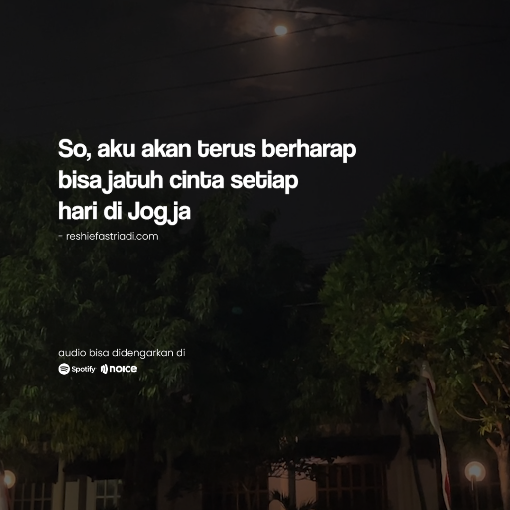 Kita pernah membuat romansa di Sleman. Lewat sususan agenda yang selalu menyenangkan. Kita membuat itinerary kita sendiri di tengah tugas kuliah yang sialan. Dari utara sampai selatan; kita meninggalkan jejak di setiap pemberhentian. Kau ingat malam di Taman Kaliurang? Sedikit gerimis kala itu. Kau memakai hoodie hitam yang ternyata tak mampu menahan gigilnya udara. “Aku […]
