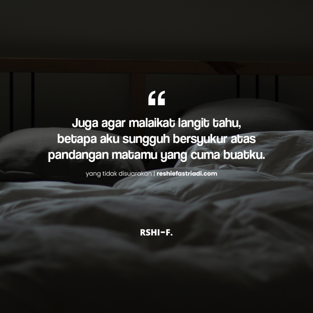 1.15 AM Aku sedang membayangkanmu pulas; dengan suguhan menggemaskan di caramu tidur. Kadang aku heran “Kok bisa ya kamu tidur mingkem?” Sesekali kau tersenyum bidadari, entah kau memimpikan siapa di sana. Kuharap aku! Sementara aku masih dalam jaga. Mengerjakan entah apa di ruang kerja. Di jam segini, lagu-lagu yang keluar adalah Ebiet G. Ade atau […]